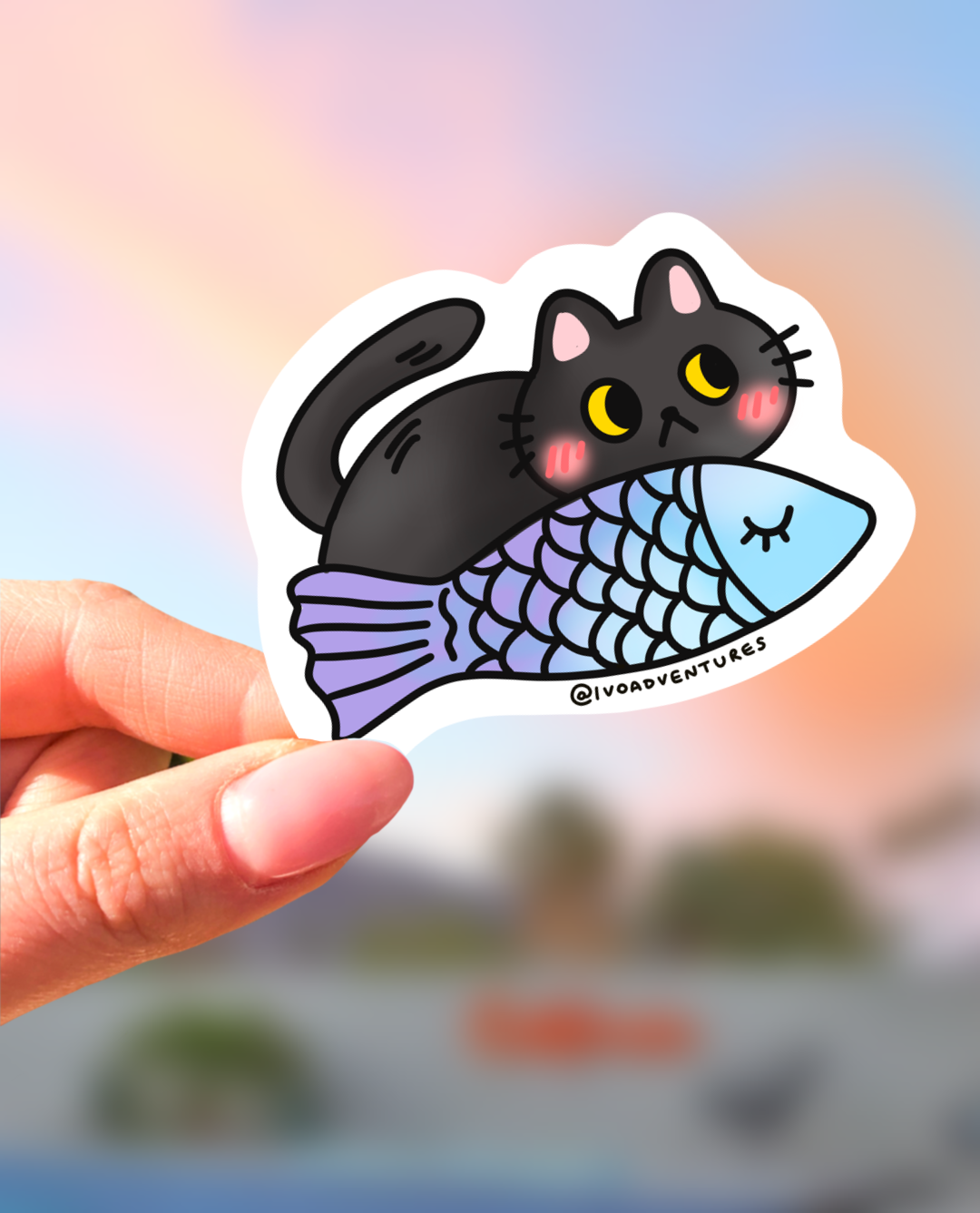 Naklejka - Sweet Kotek – Kotek z rybką